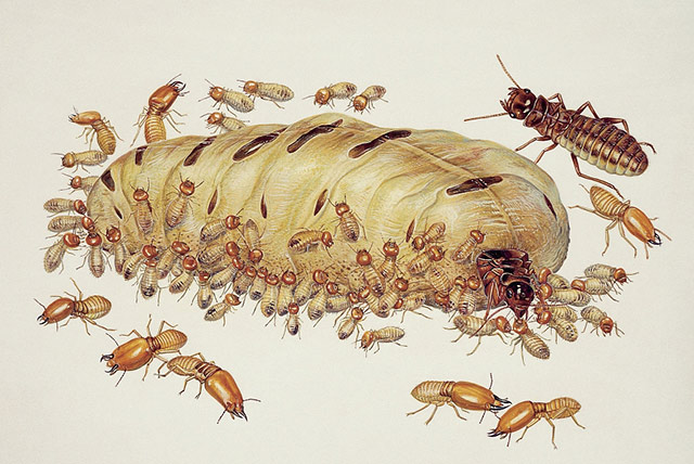 白蟻屬于蜚蠊目,在整個白蟻巢穴中,蟻王、蟻后就是統(tǒng)治者;一個有5年以上的成熟白蟻巢穴,每年蟻后都要產(chǎn)下數(shù)百萬枚蟻卵,經(jīng)過工蟻們一個月左右的認(rèn)真照料,蟻卵得以孵化。